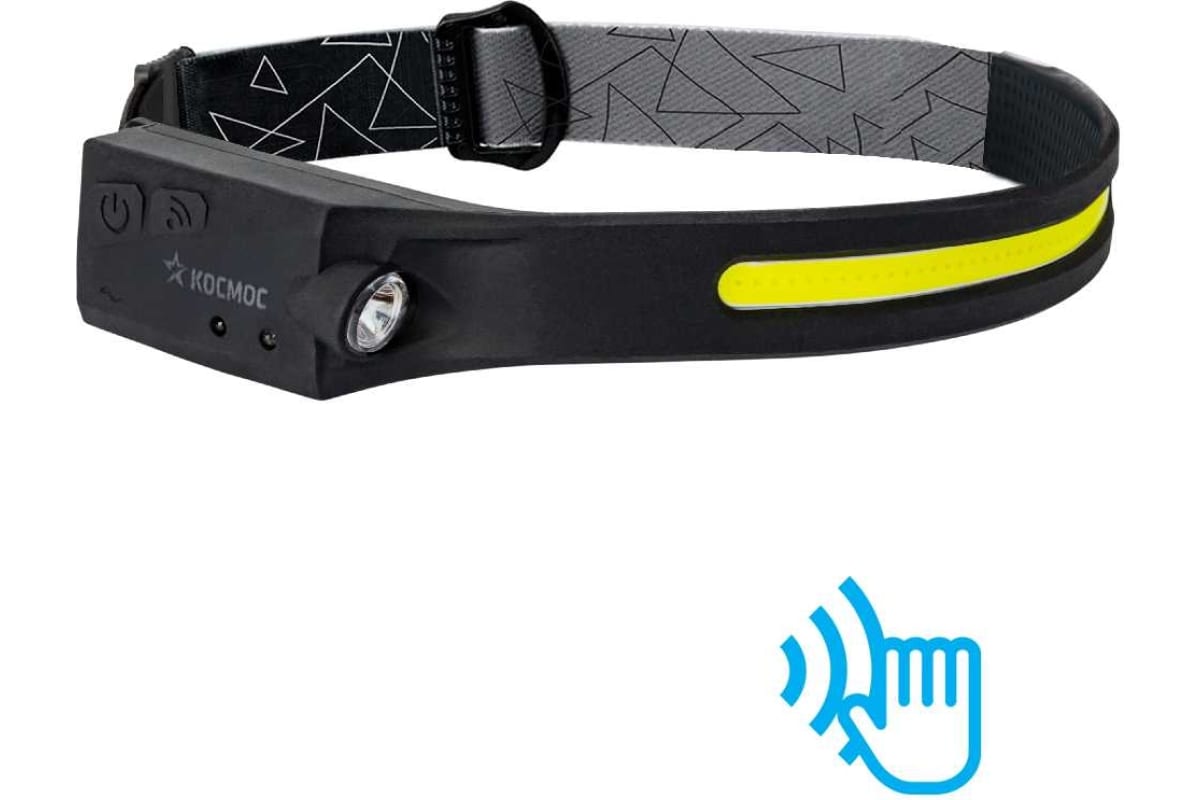 Фонарь налобный Космос KOC504Lit (лит.акк.3,7V1,2Ah)1св/д 2W+COB 20W,130lm+400lm,type C,сенсор,IP54