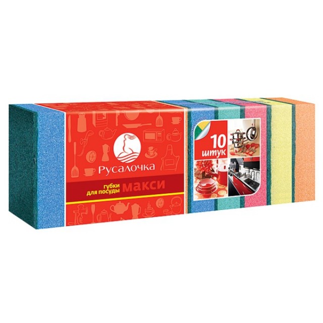 Главная Товары для уборки. Туал.бумага, бумаж.полотенца, салфетки, губки, мочалки Губка для посуды «Insula» макси 10шт
