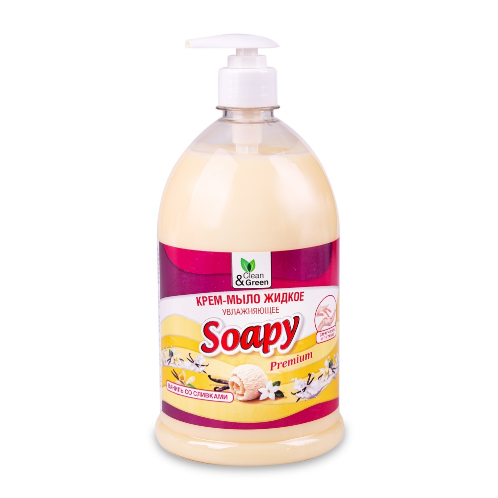 Главная Бытовая химия Clean&Green Крем-мыло ‘Soapy’ ваниль со сливками увлажняющее с дозатором 1000мл. CG8116
